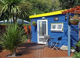 Quaint log cabin in garden of owner's house. Perfect for our one night stopover.